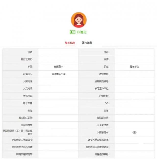 (1)首页:基本信息要求全部填写,照片上必须加盖原学校团委印章,否则无效。