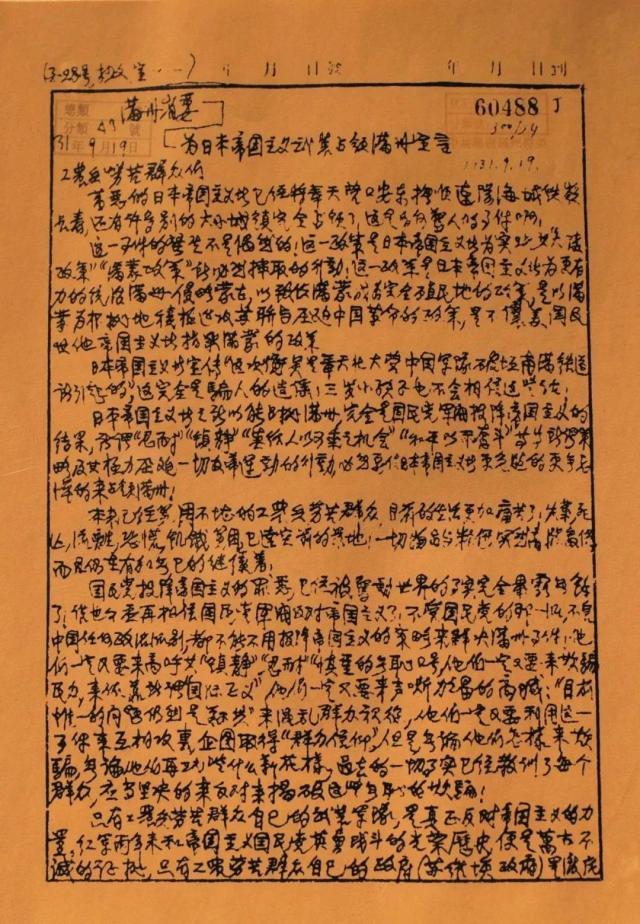 1931年“九一八事变”后,中国共产党于1931年9月20日发表了《为反对日本帝国主义强占东三省宣言》。1931年9月22日,中共中央做出了《关于日本帝国主义武装占据满洲与目前党的紧急任务的决议》,号召东北人民开展游击战争,打击侵略者。