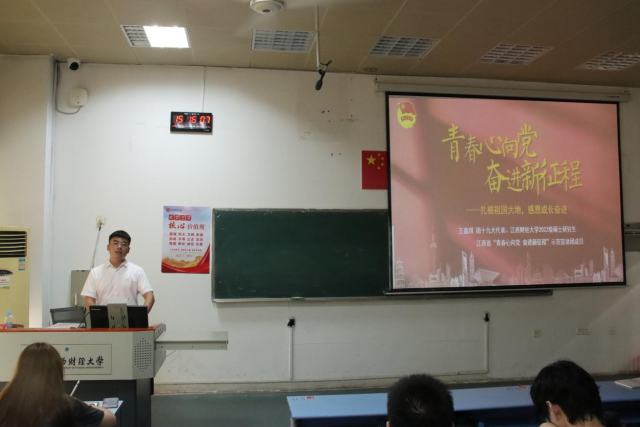 共青团十九大代表、我校2022级民商法学硕士研究生王鑫琪以“扎根祖国大地,感恩成长奋进”为主题分享了自己赴京参会的感受与体会。他表示,历史使命催人奋进,当代青年重任在肩,希望大家找准适合自己的领域和赛道,在社会实践、服务同学、自我成长中努力把经历转化为经验、把阅历转化为能力。