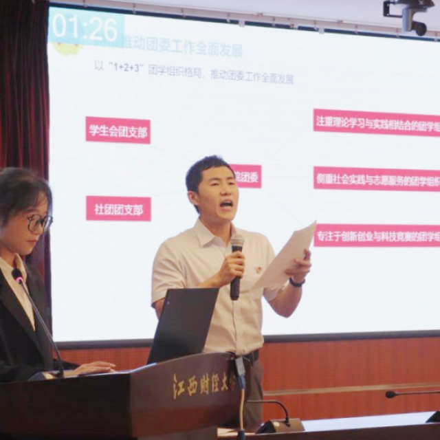 过去一年,江西财经大学共青团始终坚持以习近平新时代中国特色社会主义思想为指导,全面贯彻落实党的二十大精神和习近平总书记关于青年工作的重要思想,紧紧围绕立德树人根本任务,巩固深化团员和青年主题教育工作成效,在强化思想引领、拓展综合素质等方面取得了优异成绩。此次考评述职大会,既是为团学组织交流学习搭建的有效平台,也是学校持续全面深化共青团改革、全面落实从严治团的重要举措。
