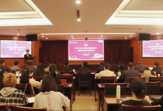 4月23日上午,我校2023-2024年度团委工作考评述职大会于蛟桥园校区图文信息大楼2号报告厅召开。校党委常委、宣传部部长韩国玉,党校校长雷迎春,党委教师工作部部长胡建国,工会主席郑赟,大学生职业发展促进中心主任黄雨虹,党委统战部副部长饶开明,党委办公室、校长办公室副主任吴宗福,教务处副处长胡少勇,学工部副部长匡仁相,校团委书记王昊等出席会议并担任评委,来自18个学院的90名团员青年代表参加大会并担任大众评委。