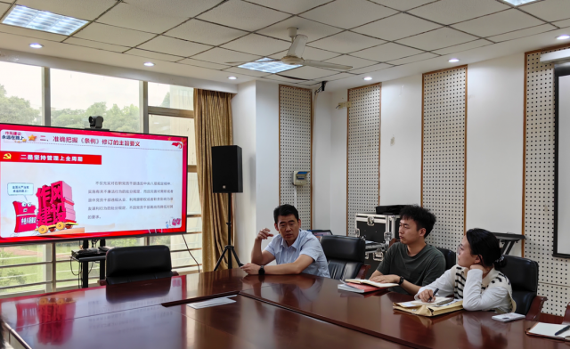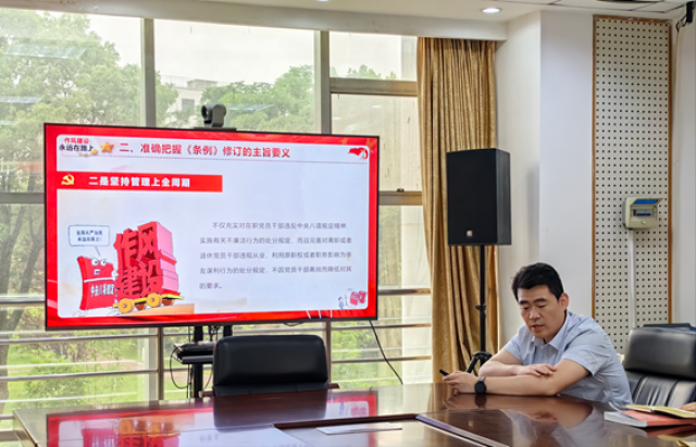 王昊从《中国共产党纪律处分条例》修订的历史沿革、重要意义、主要内容三个方面领学《条例》的相关内容,并结合相关条款深刻剖析典型案例,做到以案说德、以案说纪、以案说法、以案说责,号召全体党员同志用心钻研领会,时刻对标对表,自觉将纪律要求内化于心、外化于行,将严格执行和维护党的纪律作为立身之本、正行之范。