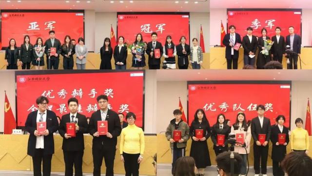 唇枪舌战展才华,智慧交锋见真章,无关胜败皆荣光。经过一个多月的激烈角逐,南昌大学、江西财经大学、江西服装学院分别领衔冠军、亚军与季军。闭幕式上,颁奖嘉宾为获奖队伍颁发证书,鼓励同学们踔厉奋发,共同为辩论事业贡献青春蓬勃力量。