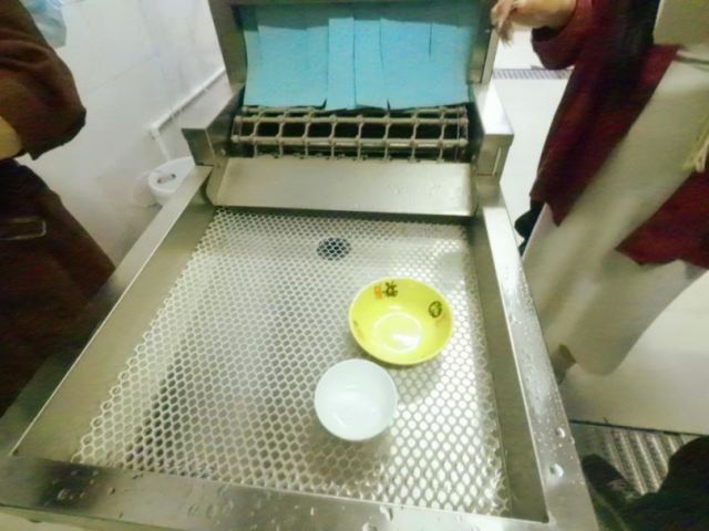 大米采用脱贫地区大米,既有品质保证,也在一定程度上扶贫济困。蔬菜方面,色泽新鲜,叶片饱满,没有出现枯萎或者发黄的现象。肉类质地紧实,颜色正常并且无异味。并且需要冷藏的食材也放在了专门冷藏的设备中进行保存。餐具的消毒方面也是检查的重点之一,学生代表团认真地检查了其清洗以及消毒流程,其使用的洗消一体机器以及其对环境的保障保证了餐具的安全,也就解除了我们同学对食堂餐具的干净与否的担忧。