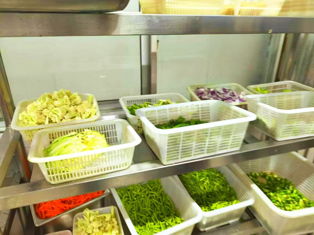 走进食材储存区,仿佛进入了一个充满珍宝的宝库。食堂管理人员看到这琳琅满目的食材自豪地说到:“我们的食材进货渠道固定。每一种食材都有‘三证’(生产许可证,经营许可证和产品合格证明),是很有安全保障的”。放眼望去,新鲜的蔬菜翠绿欲滴,被整齐地码放在货架上,且做好了毛净区分。肉类则被存放在低温冷藏柜中,确保肉质的鲜嫩和安全,每一种食材都有明确的标识,记录着采购来源、保质期等信息,为美味的诞生提供了新鲜和安全的保障。