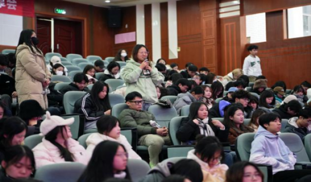 在提问环节中,同学们踊跃举手、积极提问,现场气氛热烈。康健民老师结合自己在影视创作领域的多年经验,耐心地为同学们答疑解惑。他以《我们一起摇太阳》这部电影为例,鼓励青年从影视鉴赏中感受生命的力量,挖掘生活中的真实情感和独特体验,以优秀的作品传递中国声音。