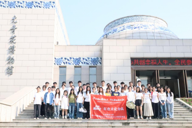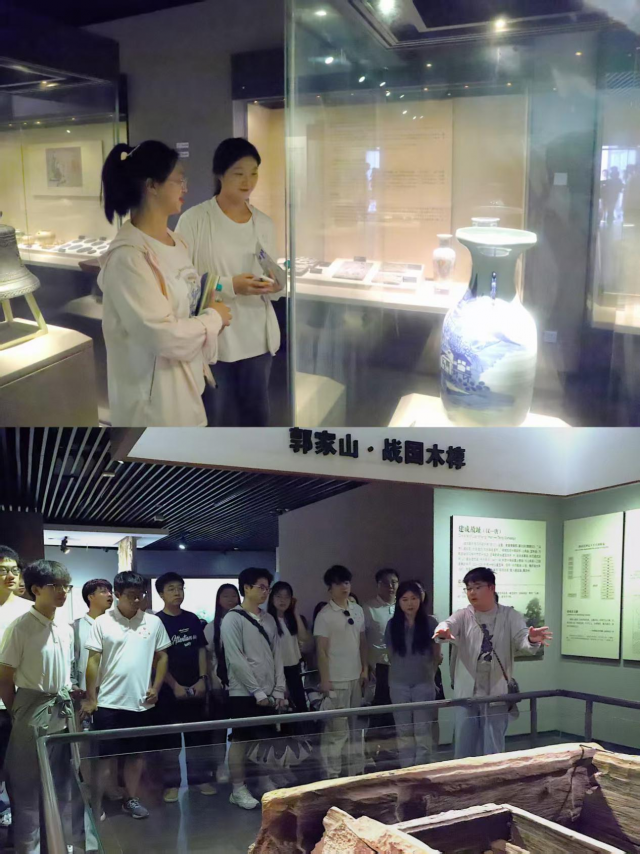 7月8日上午,统院学子们前往了高安市博物馆。高安市博物馆作为全国重点博物馆、国家二级博物馆,以收藏元代青花瓷器闻名于世,其馆藏元青花数量位居中国第一、世界第三,釉里红瓷器更是全球馆藏之最。在老师的讲解下,同学们参观了历史文明馆、元青花鉴赏厅等展厅。学子们驻足在玻璃展柜前,青花云龙纹兽耳衔环盖罐釉色如凝脂,十二条龙纹盘旋而上,鳞片纹路清晰可辨。
