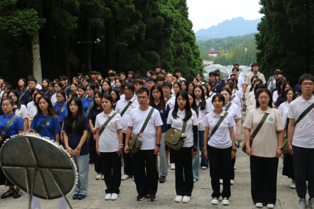 苍松翠柏掩映下的井冈山革命烈士陵园庄严肃穆。7月27日,江西财经大学“红岭经政创研团”与来自全国52所高校的师生齐聚于此,整齐列队,向革命先烈敬献花圈、整理挽联、深深鞠躬,缅怀英烈。