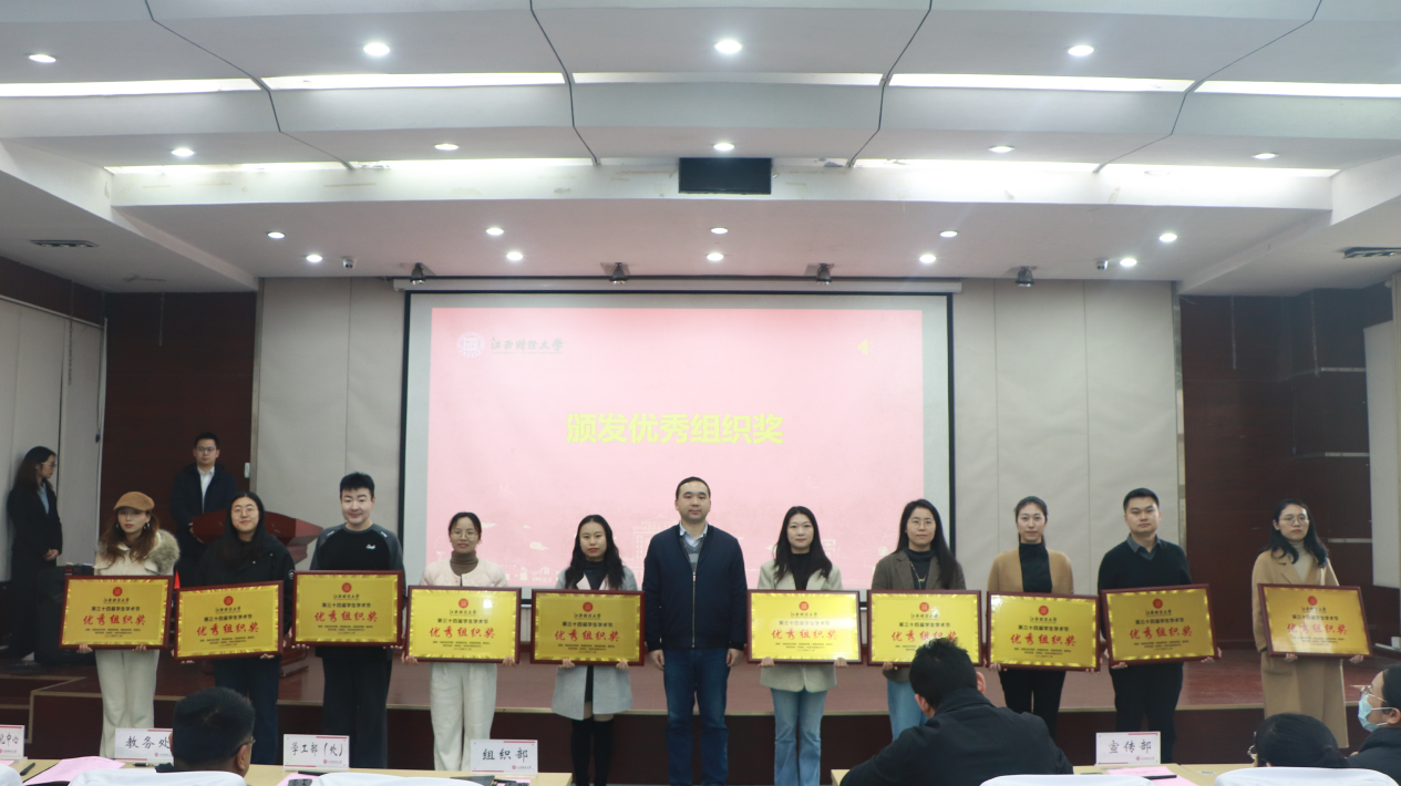 12月5日下午,我校第三十四届学生学术节闭幕式在蛟桥园南区大学生活动中心103宣讲室举行。校团委书记王昊、组织部副部长胡坤、宣传部融媒体中心副主任成亚林、学生工作部(处)副部长陶志超、校团委副书记阳铃、教务处副处长吴良平、科研处副处长蒋崇辉、科技与信息化中心副主任吴志斌、研究生院培养科副科长杨林杰等出席活动,各学院负责老师、院校两级团干部代表及青年学生代表参加。本次会议由校团委挂职副书记吕镇坤主持。