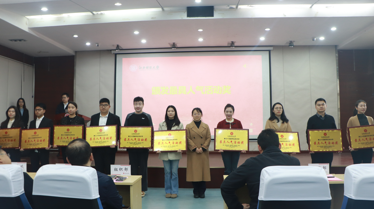 最后,由相关职能部门负责人为在本届学术节中表现突出的集体和个人颁奖。经济学院等10个学院荣获“优秀组织奖”;“国泰海通杯”等10项活动获评“最具人气活动奖”;牙小利等230名同学获得“先进工作者”称号;张博慧等299名同学被评选为“优秀个人”;法学院(纪检监察学院)辩论队等190支队伍荣获“优秀团队”称号。