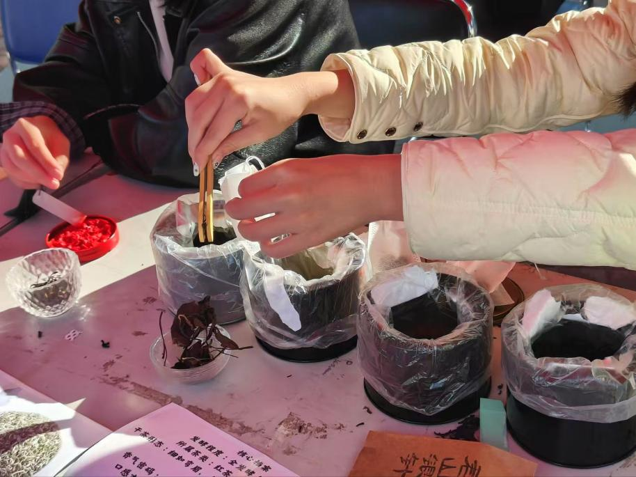 活动现场精心布设五大主题体验区,全方位解锁传统文化的多元魅力:“书”韵飘香区里,书法写作让学子挥毫泼墨间体悟笔墨精神,飞花令角逐尽显诗词积累,汉字演变展则串联起文明传承的轨迹;“乐”声悠扬区中,经典乐曲猜谜考验听觉记忆,古今乐器辨识环节让大家近距离感受传统音律之美;“服”章之美区设置看图识服饰、传统文化答题闯关等趣味环节,让学子在互动中读懂服饰背后的文化密码;“茶”香雅韵区推出DIY茶包制作、名茶品鉴、茶叶知识科普等特色内容,让茶香与文化味交织融合;“民”风荟萃区则带来了民俗工艺手工体验、经典民间游艺及民俗知识问答等项目,让传统民俗在欢声笑语中落地生根。