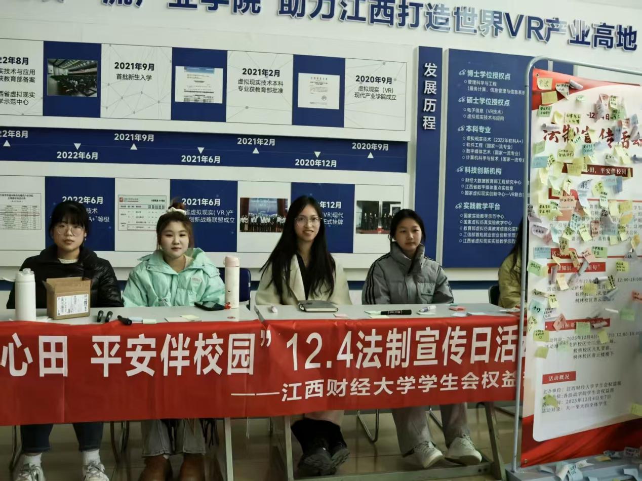 为增强学生法律意识、弘扬宪法精神,12月3日至7日,我校组织开展以“法雨润心田,平安伴校园”为主题的国家宪法日暨全国法制宣传周系列教育活动。活动由校学生会权益部主办,虚拟现实(VR)现代产业学院与经济学院联合承办,会计学院、金融学院、法学院(纪检监察学院)等九个学院共同协办,致力于营造校园尊法学法守法用法氛围,筑牢校园法治安全防线。