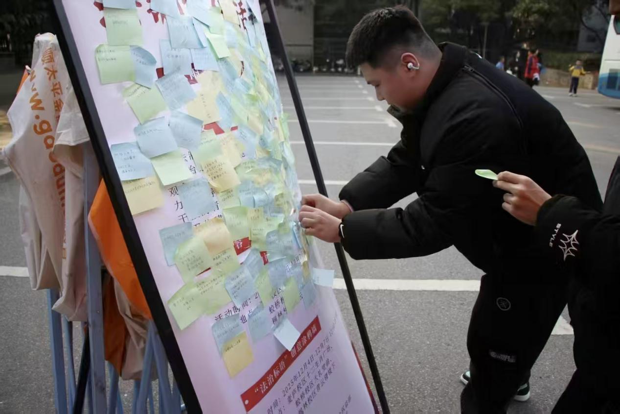 本次宣传周活动形式新颖、载体丰富,线上线下协同推进。线上依托学校官方新媒体平台进行预热与法律知识普及;线下在蛟桥园、麦庐园、枫林园同步设立普法宣传点,举行“法制标语创意涂鸦”“法制宣传讲座”等活动。系列安排兼顾趣味性与教育性,让师生在沉浸式互动中领会法律精神,提升普法吸引力与感染力。
