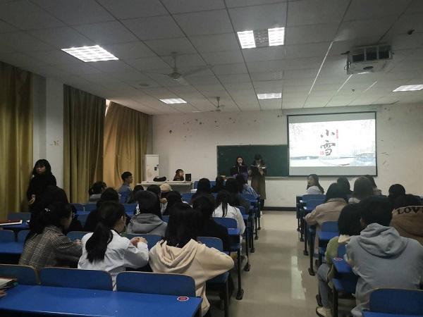 为帮助同学们了解二十四节气,弘扬中华传统文化,增强同学们的文化认同感与自豪感,11月22日下午,外国语学院中国传统文化研究社在英庐Y507教室开展了“浸浸三楚白,渺渺九江寒”传统文化主题团日活动,外国语学院学子积极参与了此次活动。