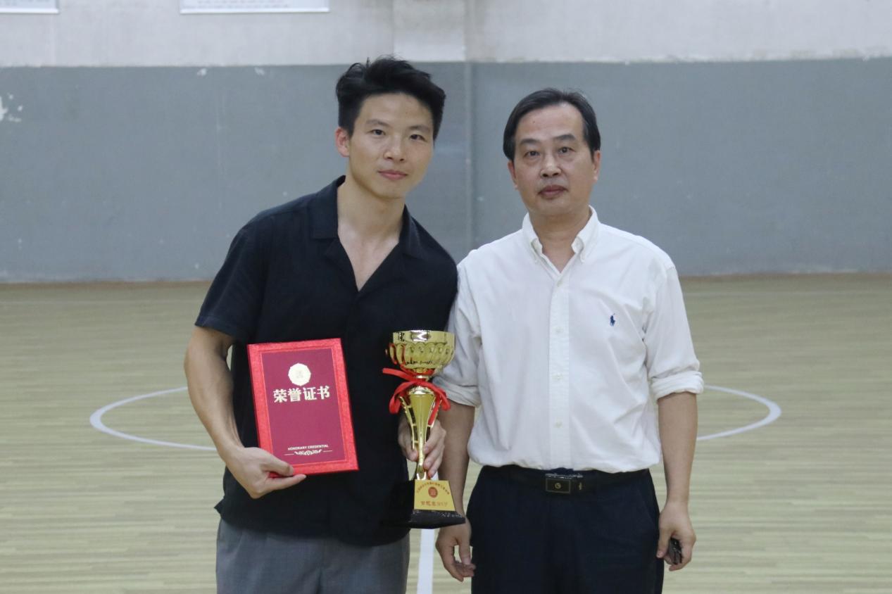 体育学院院长徐旭川为“总决赛FMVIP”获得者机关队柳晨颁奖