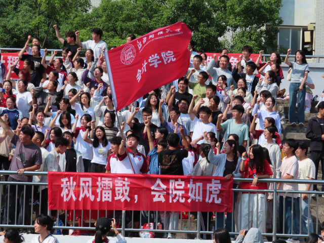 观礼台上,会计学院的志愿者们热情洋溢,他们手持旗帜,高声呐喊,用激昂的鼓声为运动员们加油助威。那震耳欲聋的鼓声,如同战鼓,激励着运动员们奋勇向前。整个田径场被激情和热忱所包围,观众们的欢呼声、呐喊声汇成一片,“秋风擂鼓”!“会院如虎”!有力的加油声为运动员们注入了无穷的力量。他们不仅是赛场上的拉拉队,更是运动员们的精神支柱,用热情和活力点燃了整个赛场。