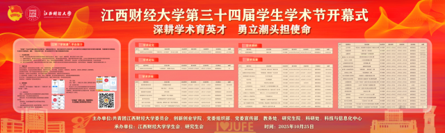 据悉,本届学生学术节以“深耕学术育英才,勇立潮头担使命”为主题,由全校8个职能部门与20个学院共同策划推出42项系列活动,涵盖“江财青英”学术论坛、学术论文、学术调研、青年讲堂、辩论赛、“挑战杯”种子训练营等,旨在鼓励学生跨学科、跨层次组队参与,在学术探索中勇担时代使命,于赣鄱大地上谱写江财人的青春华章。(文/校团委 王艺涵 李欣颖 郑宛芊 邓中文 图/校团委 徐俪珊 梁婧涵 张丽雯 吴燕 值班编辑/罗嘉乐 责任编辑/郑宛芊 刘雅瑜 饶震 审核/王昊 阳铃 李良鹏)