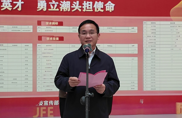 贺丹君向同学们提出三点期望:一是要以“深耕”之姿筑牢学术根基,沉心钻研、求真务实,在反复打磨中练就过硬本领,涵养严谨学风;二是要以“交叉”之思激活创新潜能,主动打破学科壁垒,在财经与科技、理论与实践的融合碰撞中探索新方向、激发创造力;三是要以“担当”之志扛起时代使命,胸怀“国之大者”,将论文写在祖国大地上,把研究做在时代需求前沿。他勉励大家以本届学术节为契机,在深耕中积蓄力量,在创新中勇立潮头,为实现民族复兴贡献江财智慧。