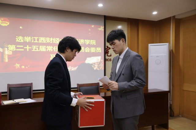全体代表共同审议并通过《经济学院第二十五次学生代表大会选举办法(草案)》《经济学院第二十四次研究生代表大会选举办法(草案)》及监、计票人名单。在监、计票人的协助与监督下,选举出江西财经大学经济学院第二十五届学生委员会委员、第二十四届研究生委员会委员;经济学院第二十五届常任代表委员会委员及主任、经济学院第二十五届学生会主席团成员、经济学院第二十四届研究生会主席团成员;出席江西财经大学第二十五次学生代表大会代表、出席江西财经大学第二十四次研究生代表大会代表。